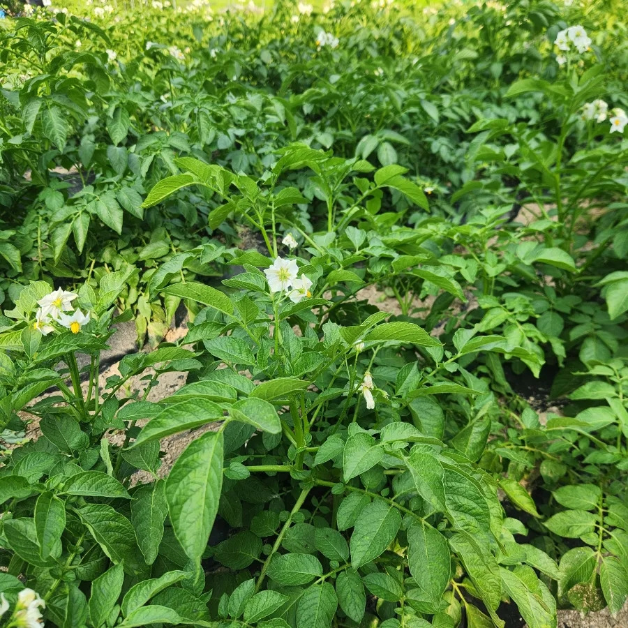 올해 꽃을 제거하지 않고 감자를 키웁니다.