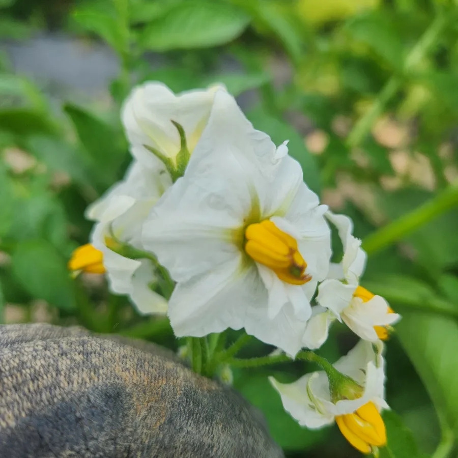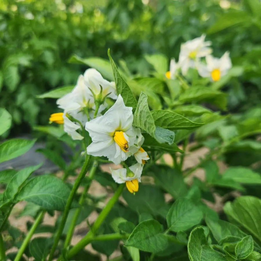 예전에는 감자꽃이 피면 무조건 감자 꽃을 떼어주었어요. 감자꽃으로 양분이 올라갈까 봐요. 감자를 통통하게 키우기 위해서죠.