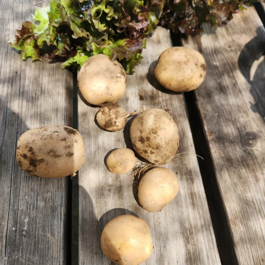 감자를 바람이 잘 통하고 서늘하고 그늘진 곳에 펴서 말리는 것이 중요해요. 이게 큐어링~ (큐어링을 통해 수확 시 생긴 상처도 아물고 수분도 날리고 단맛도 좋아지고요. 더 맛난 감자를 드시는 이유) 시원한 곳에 모아서 보관하세요.