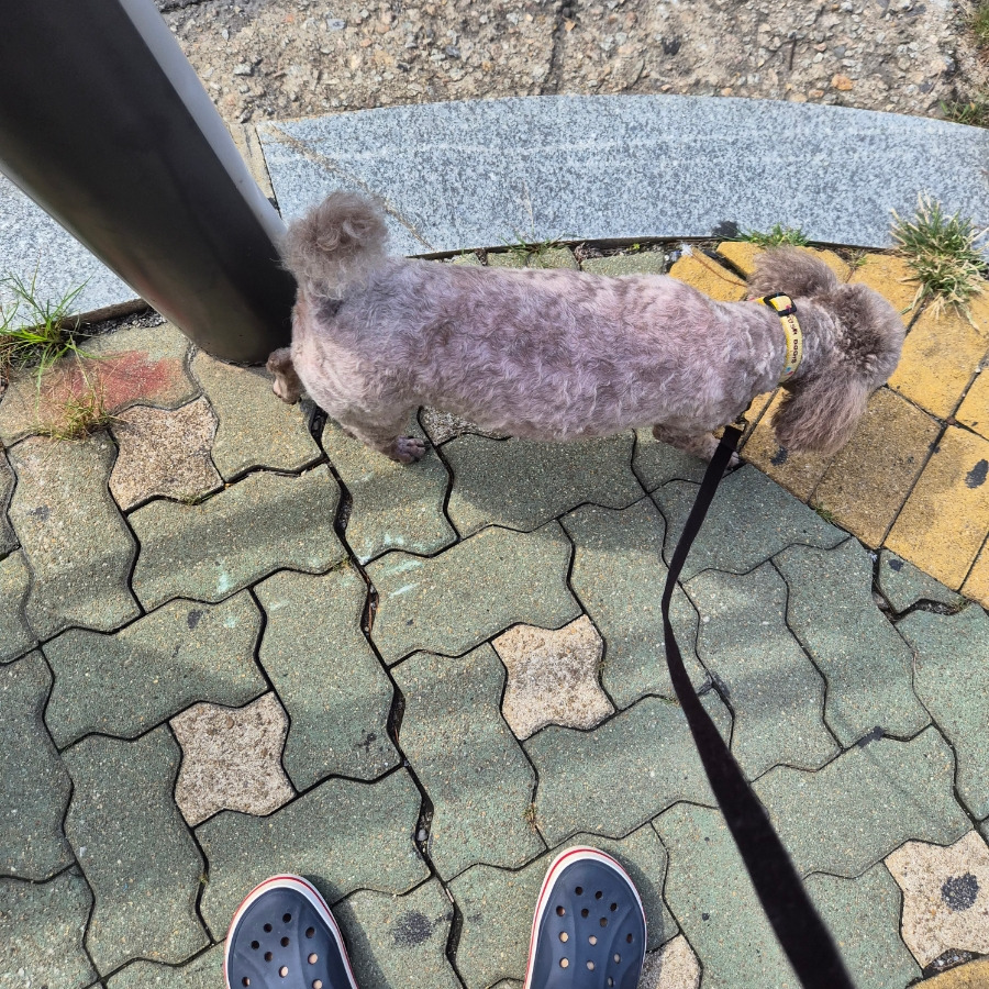 예쁜 똥도 만들고 친구들도 만나고 즐거운 아침 산책입니다. 엄마는 마루 똥만 열심히 관찰했다지요. ㅠㅠ