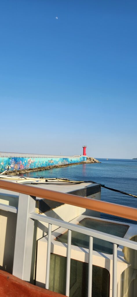 다시 주차장으로 갑니다. 건물과 건물 사이에 보이는 배~