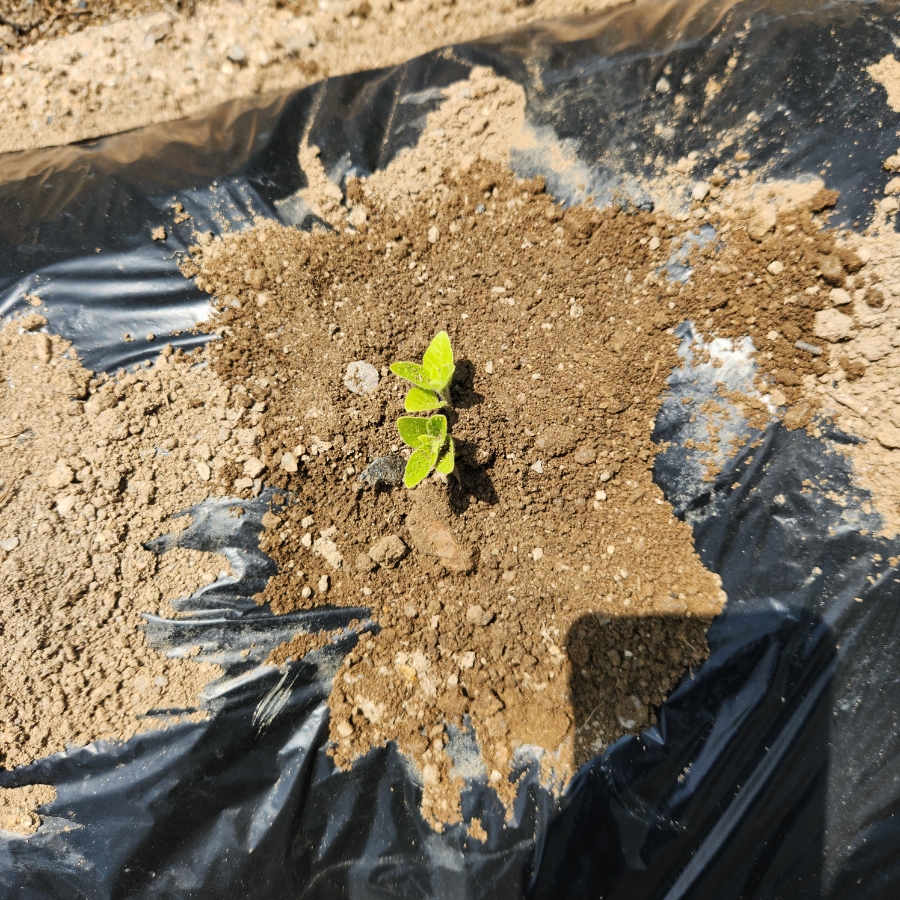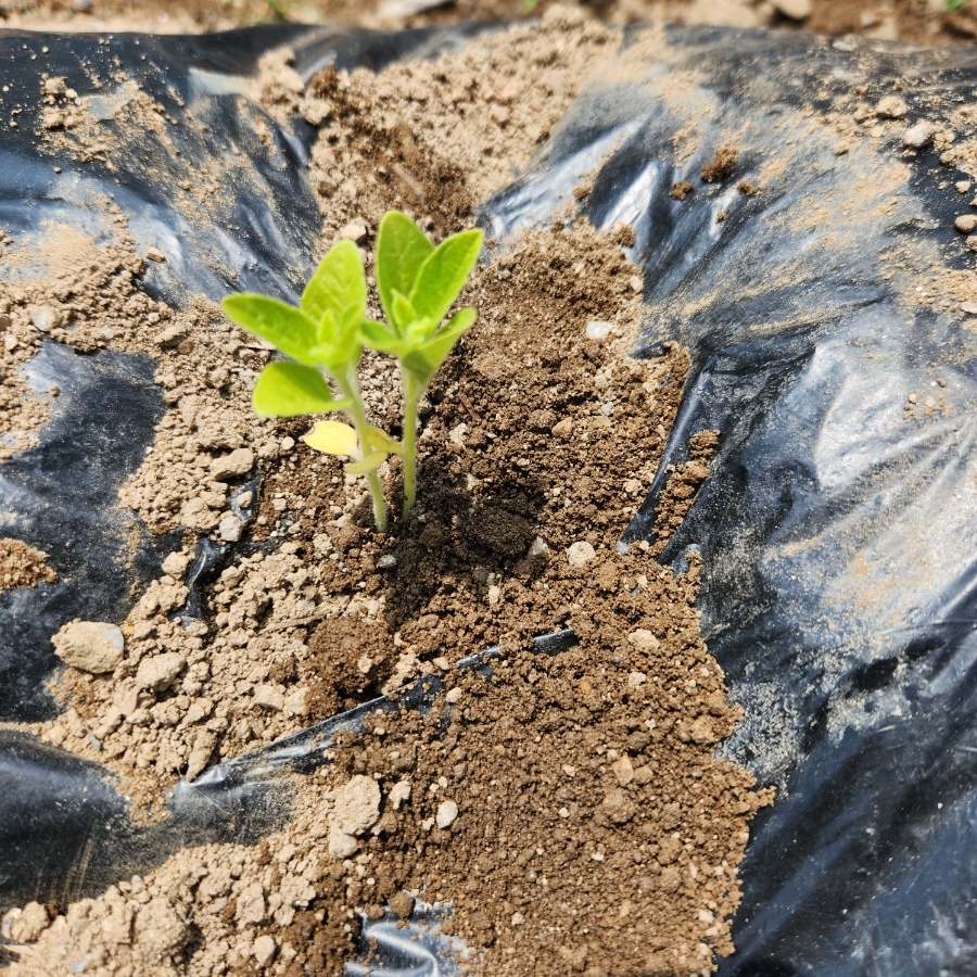 모종으로 키우기 힘들었던 참깨를 하우스에서 꺼내 밭에 옮겨 심었습니다.