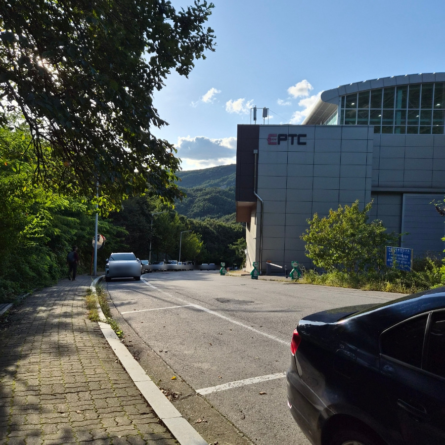 연구소 앞 길가에 양쪽으로 주차를 합니다.