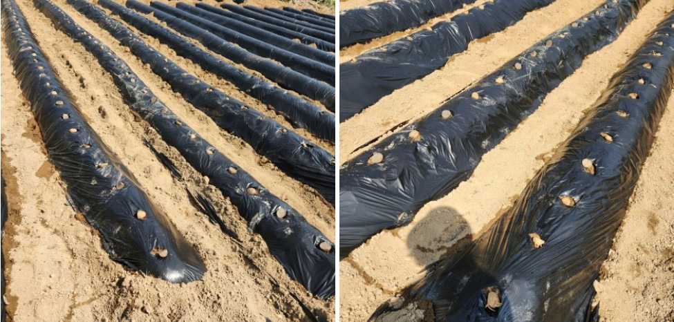 그리고 두둑을 만든 뒤 비닐 멀칭을 합니다.