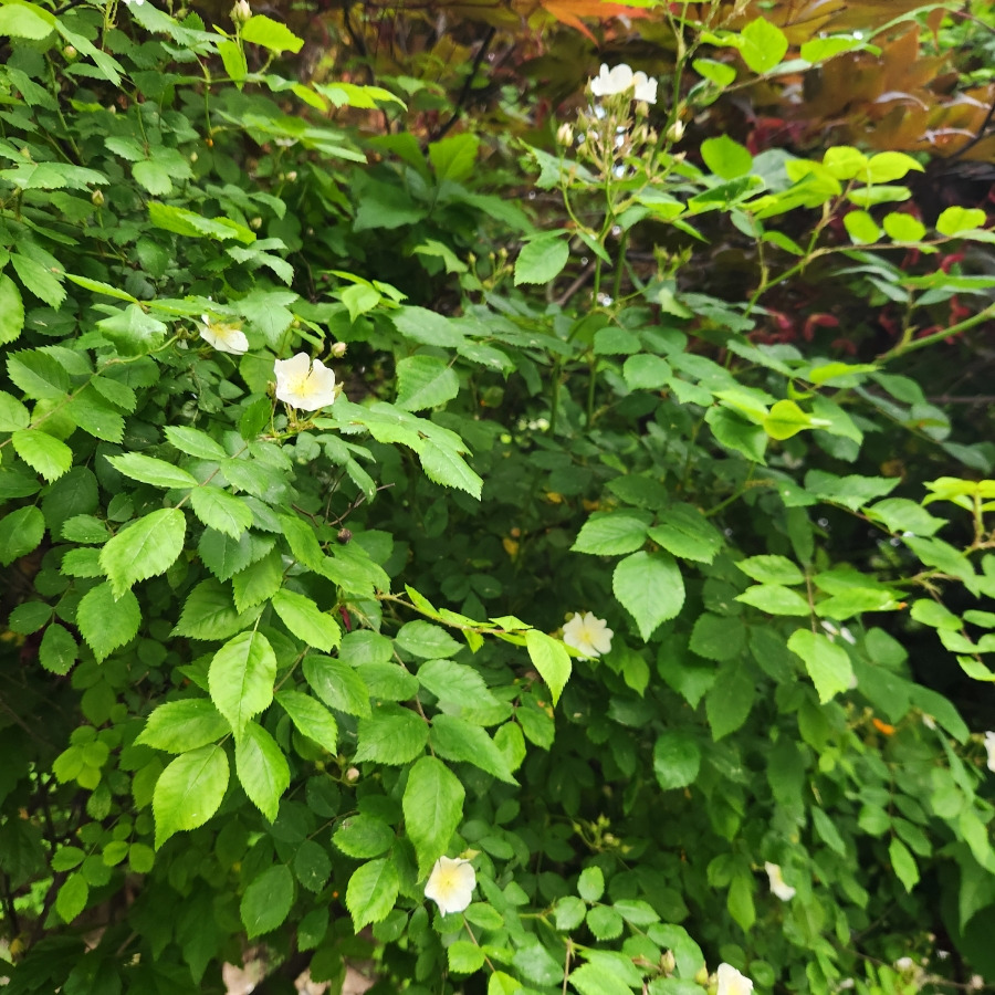 밭 경계선에 찔레꽃이 있어요.