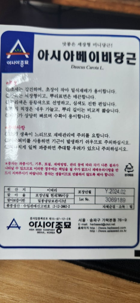 이런 씨앗을 구매하면 1년 내내 작은 텃밭에 뿌리는 농부에게는 더 좋겠죠. 저는 다이소 씨앗으로 자신감을 얻어 아시아 베이비 당근 씨앗도 구매했어요. 그런데 설명이 없네요. 다시 알아봐야겠어요.