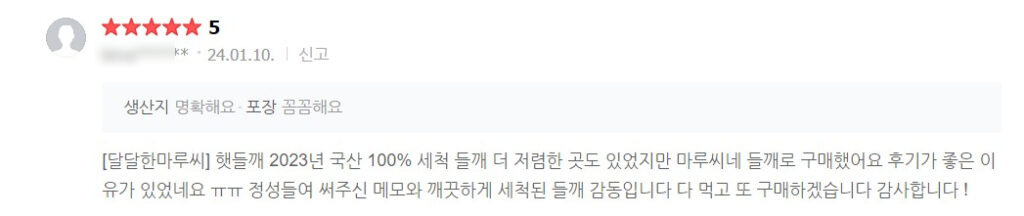 달달한 마루 씨네 밭 들깨를 네이버 스마트 스토어에서 판매를 했어요.