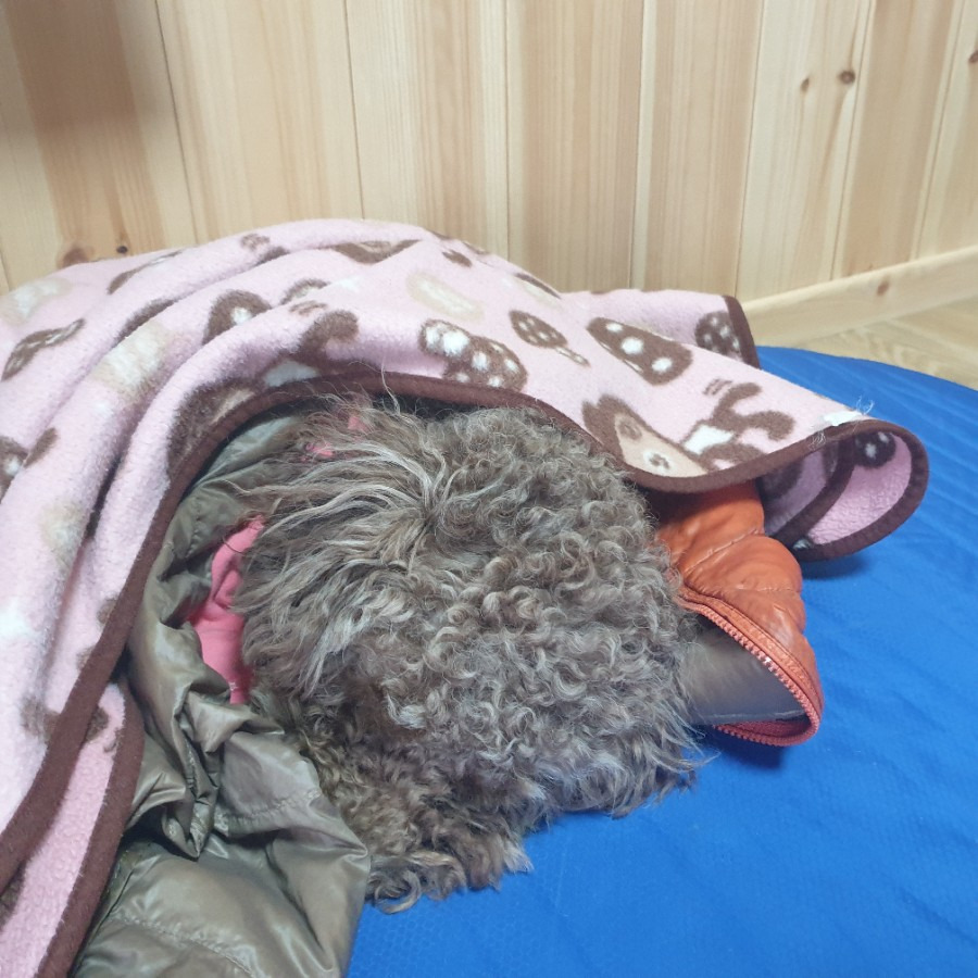 아이들이 달달한 마루 씨를 챙깁니다. 엄마와 아빠는 지금 바빠서 달달한 마루 씨를 챙기기 어려워요. 1호와 2호가 옆에서 챙겨줍니다. 아픈지 코도 만지고 쉴 수 있도록 바닥에 패드와 이불로 덮어줍니다. 에고 얼른 쉬고 아무 일 없이 일어나자.
