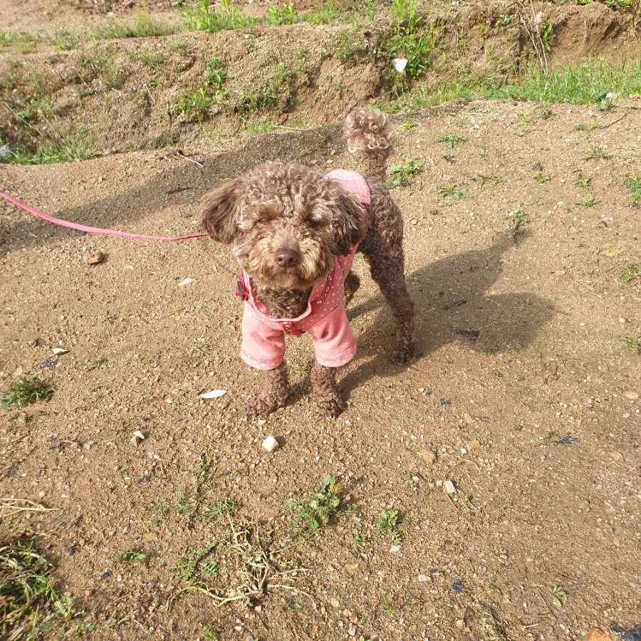 다음 날 달달한 마루 씨입니다. 다시 살아나서 산책을 나섰어요. 정말 다행이에요.