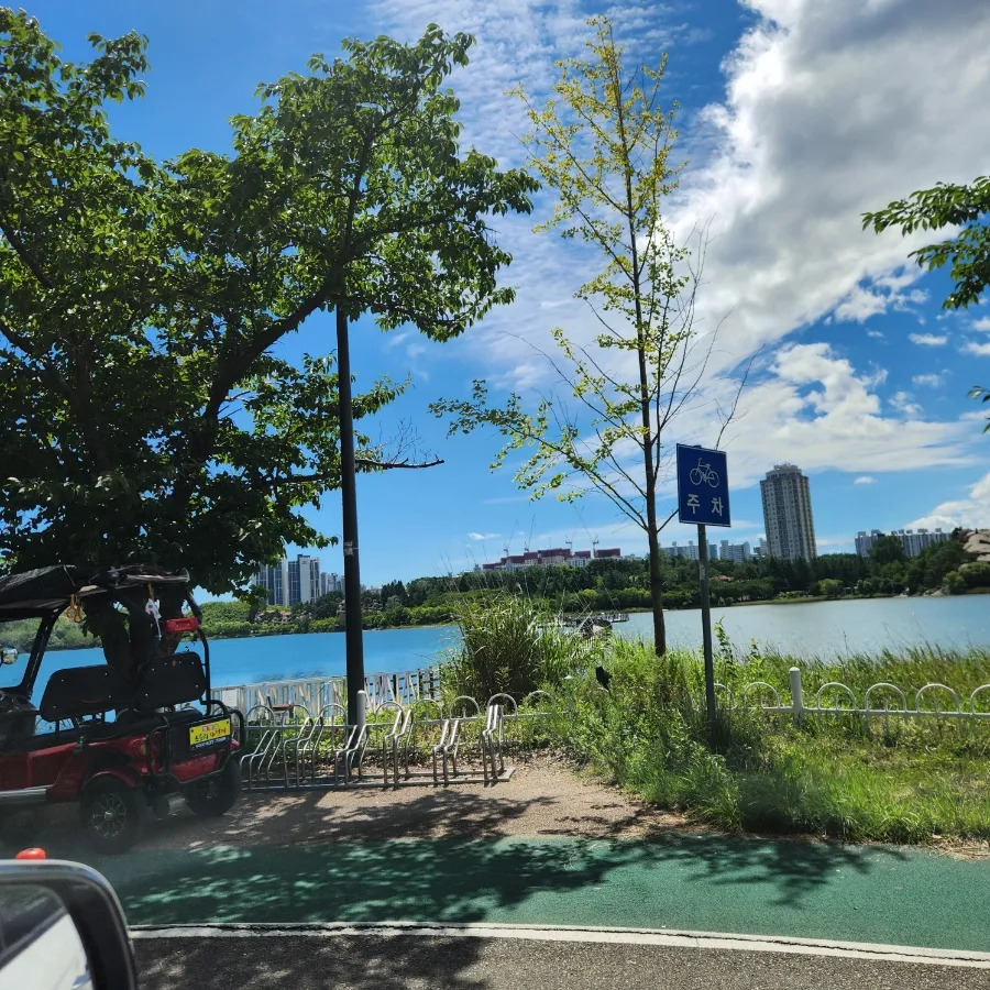 영랑호 구경에~ 신이 납니다. 시원하게 잘 정비된 영랑호를 걷고 싶지만 날이 너무 뜨거운 관계로 차로 이동하며 구경합니다.