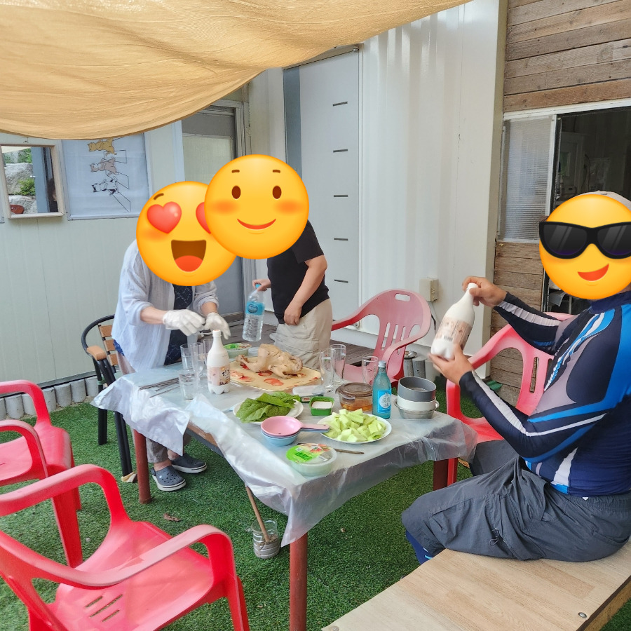 15일 양평 휴게소에서 해장국과 짜장면 아침- 봉평 메밀국수와 수육 점심- 송지호 전망대(간식 새 빵과 아이스크림 커피)-삼포 해수욕장(편의점 간식과 삶은 옥수수/ 파라솔 2만 원 대여)- 토종 한방 닭백숙과 막걸리(감자구이/ 고구마 구이/ 청약 호박 부침개/ 고모부가 키운 잘 익은 시원한 수박)