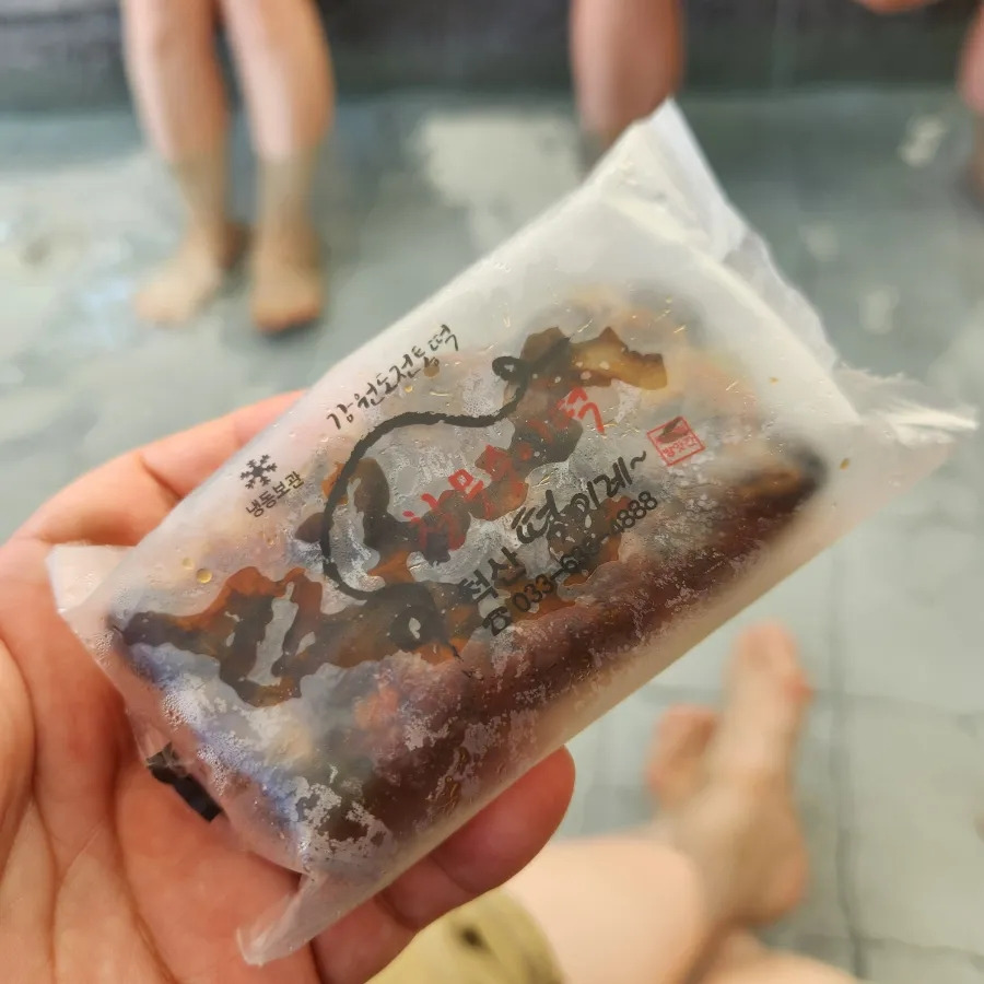 족욕장 앞 방앗간에서 파는 맛난 척산 떡~ 달달하니 쫀득하니 울 고모의 선물입니다.