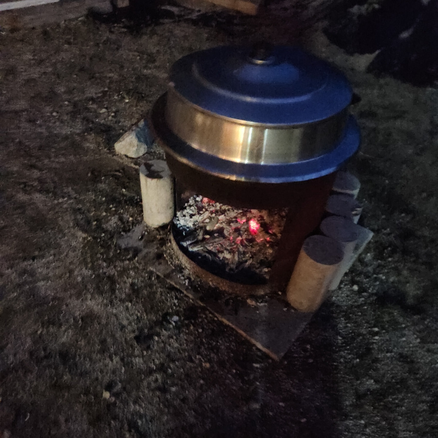 고모부가 기른 감자와 고구마가 호일 옷을 입고~ 은근하게 익어갑니다.