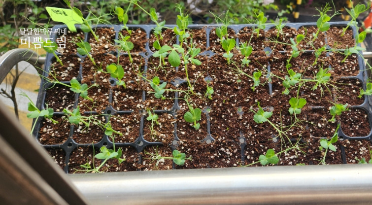 달달한 마루씨네 콩나무인 작두콩과 완두콩이 열심히 크고 있어요.