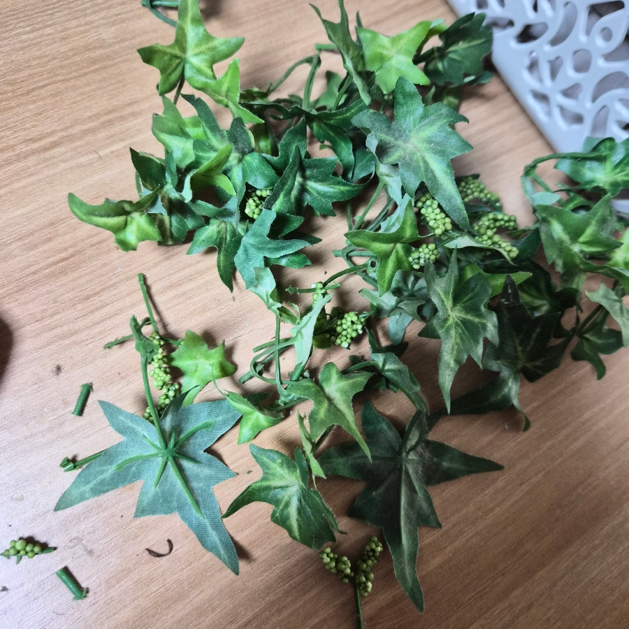 너무 재미가 없을 것 같아 잎사귀도 같이 한 몸으로 잘라 줍니다. 줄기를 조금 남기고 자르면 리스에 붙일 때도 편해요. 핀처럼 남은 줄기를 리스 사이에 꽂기도 좋아요. 너무 머리만 똥강 자르지 말기~