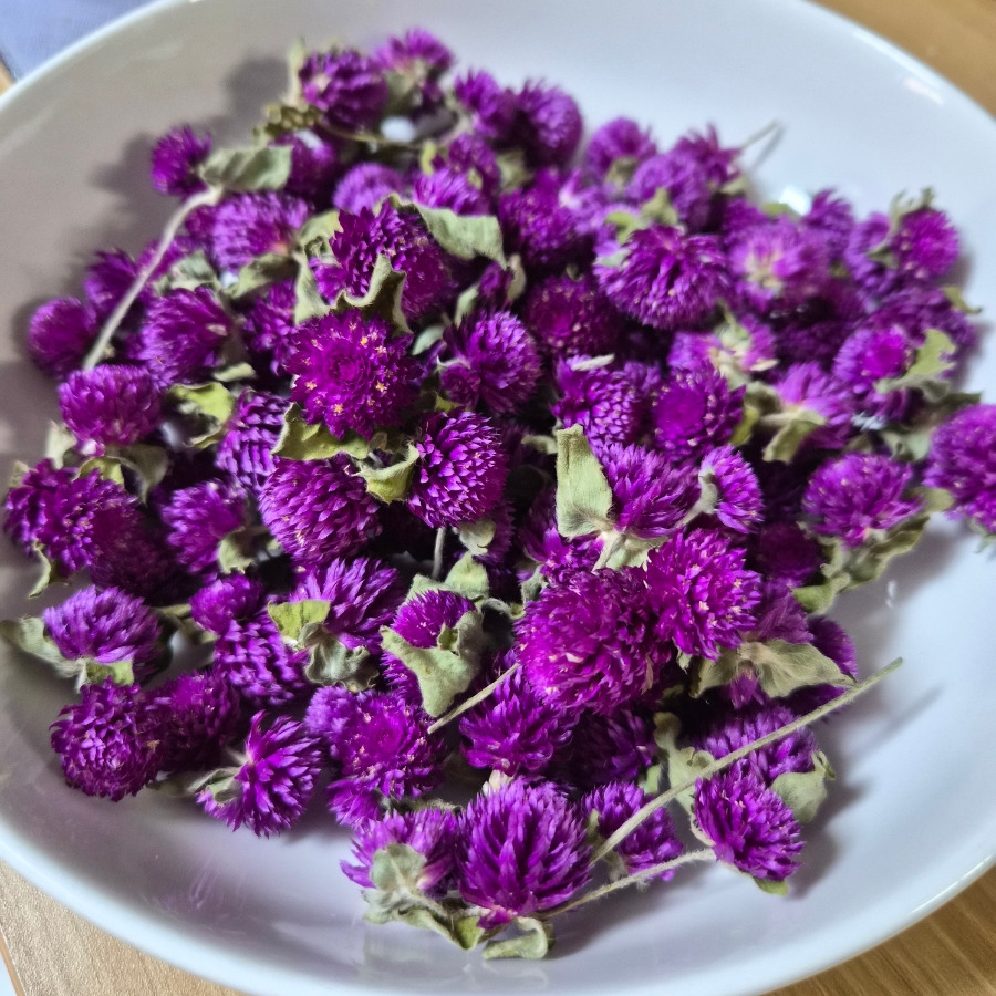 천일홍 꽃을 줄기에서 꽃송이를 동강 자릅니다. 잎사귀도 자를까 싶었는데...