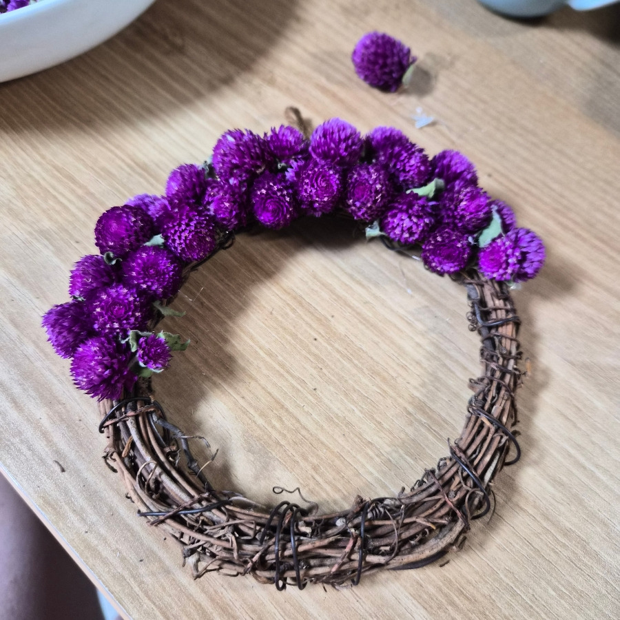 천일홍을 키워서 이렇게 천일홍 리스도 만들어 봅니다.