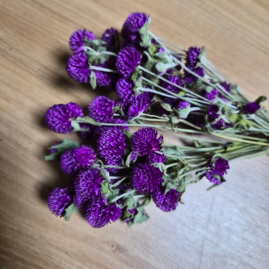 그리고 남은 천일홍으로 작은 꽃다발을 만들었어요. 집에 있는 리본 모두 총출동~