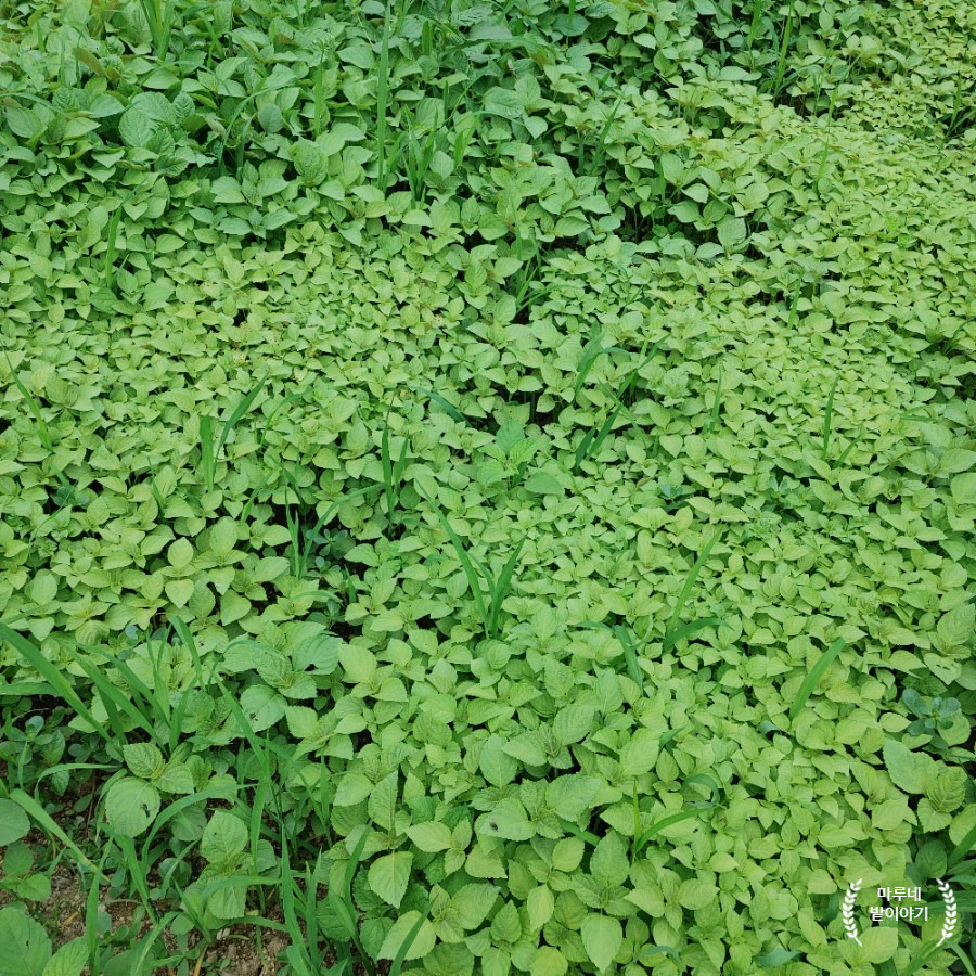 6월 중순에 밭의 한쪽 구석에 들깨를 뿌려 모종을 키웠습니다.