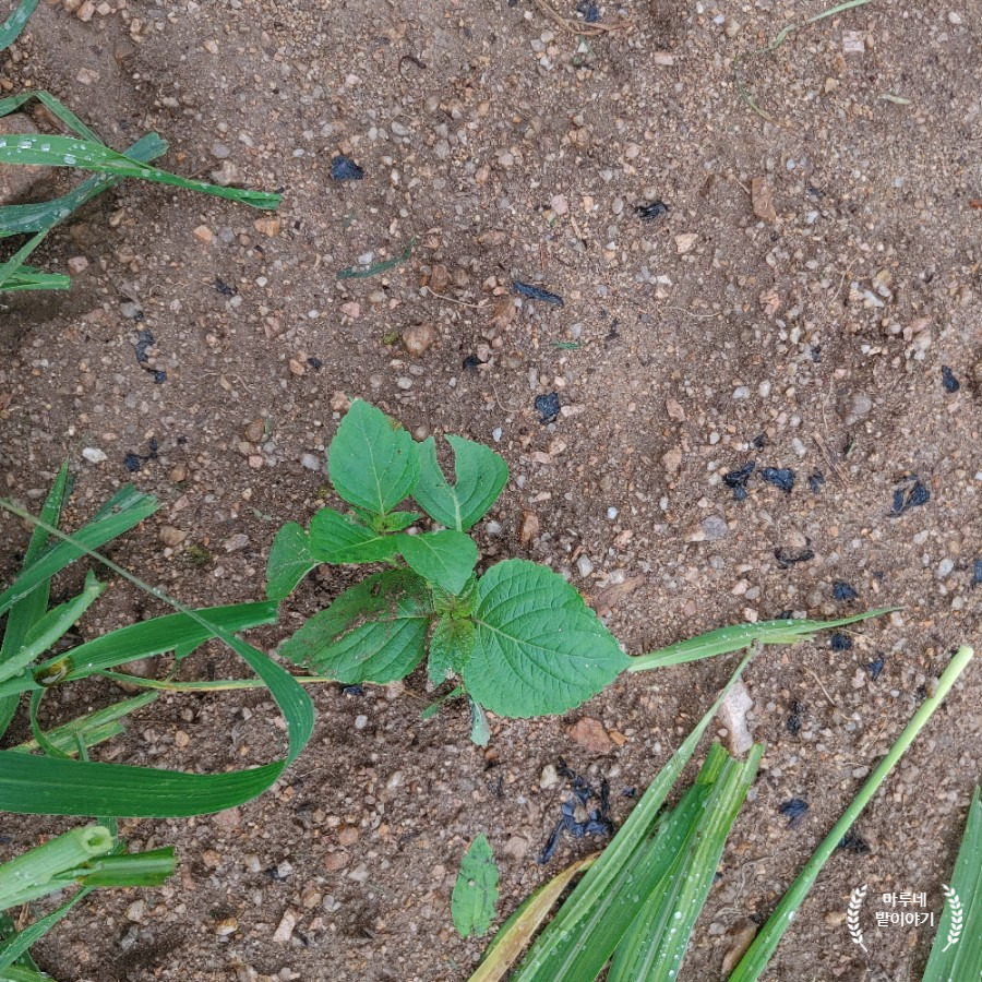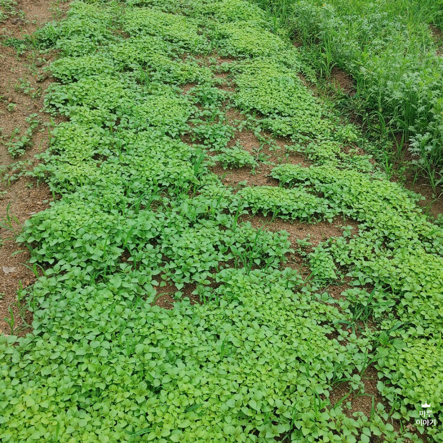 6월 중순에 밭의 한쪽 구석에 들깨를 뿌려 모종을 키웠습니다.