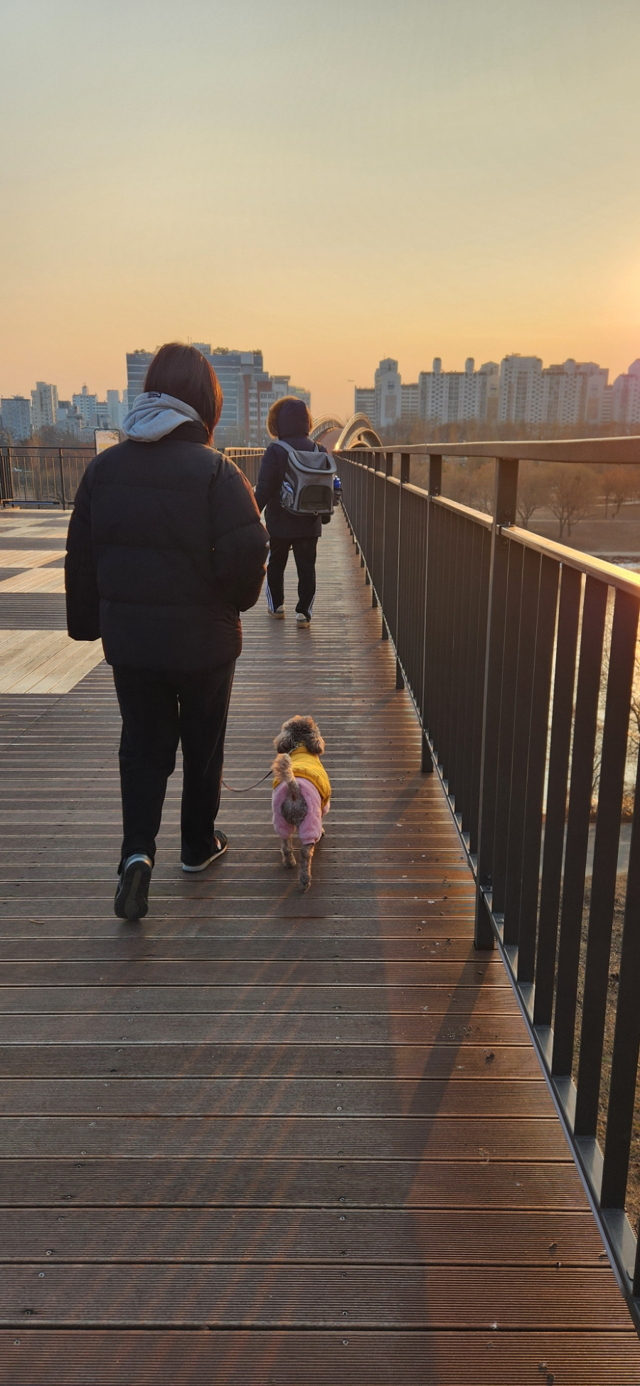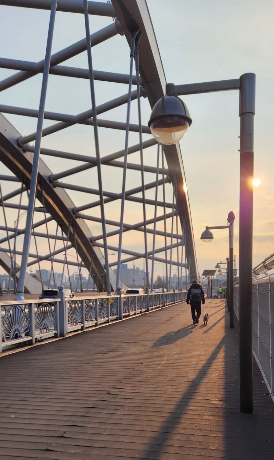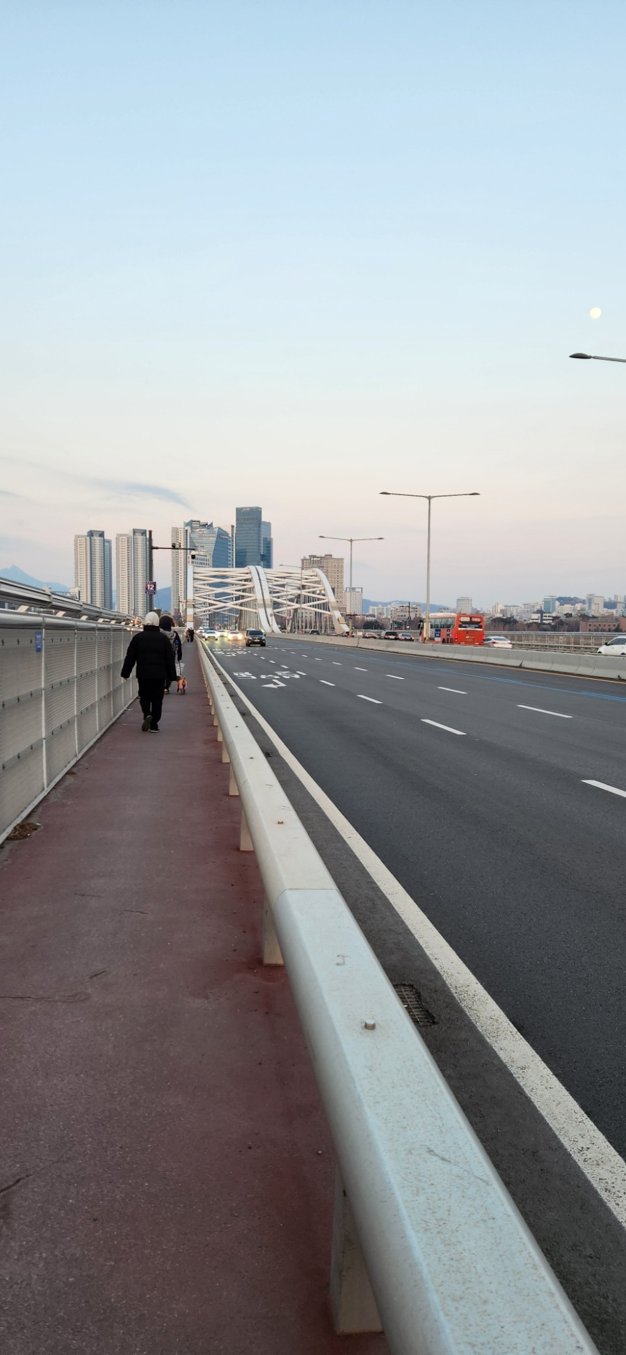 아버지와 함께 양화대교를 걷고 있어요.