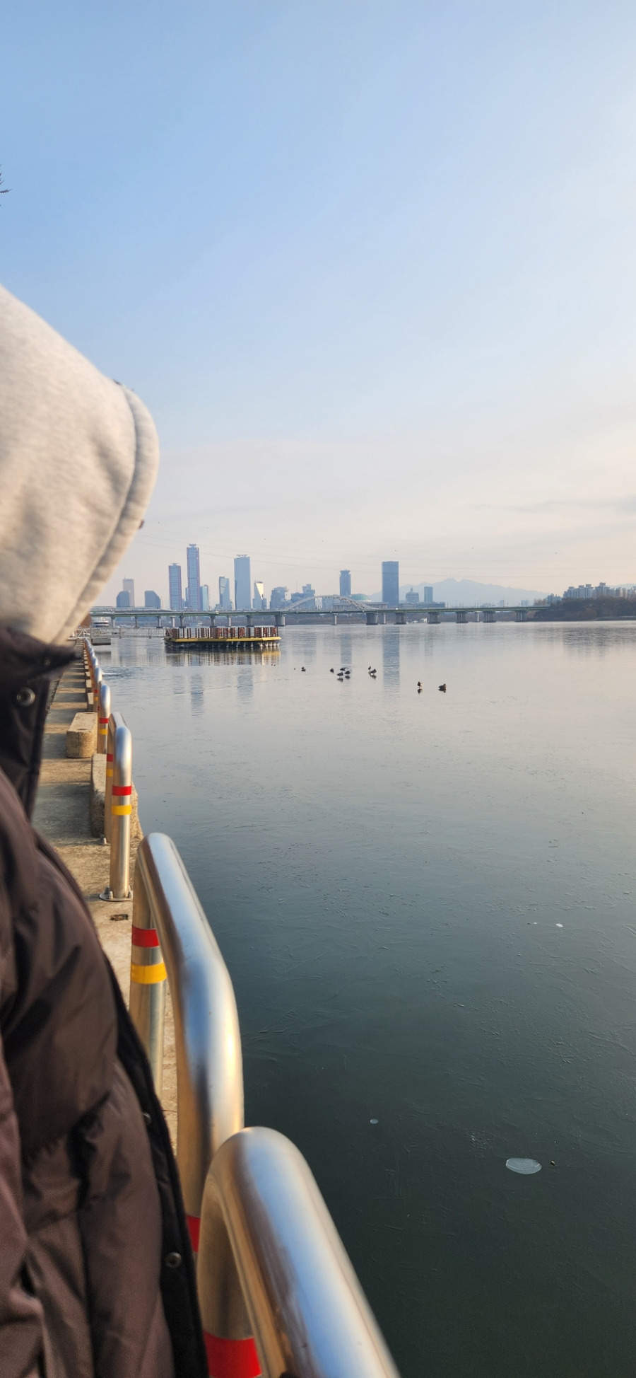 한강물이 꽁꽁~ 얼고 있어요.