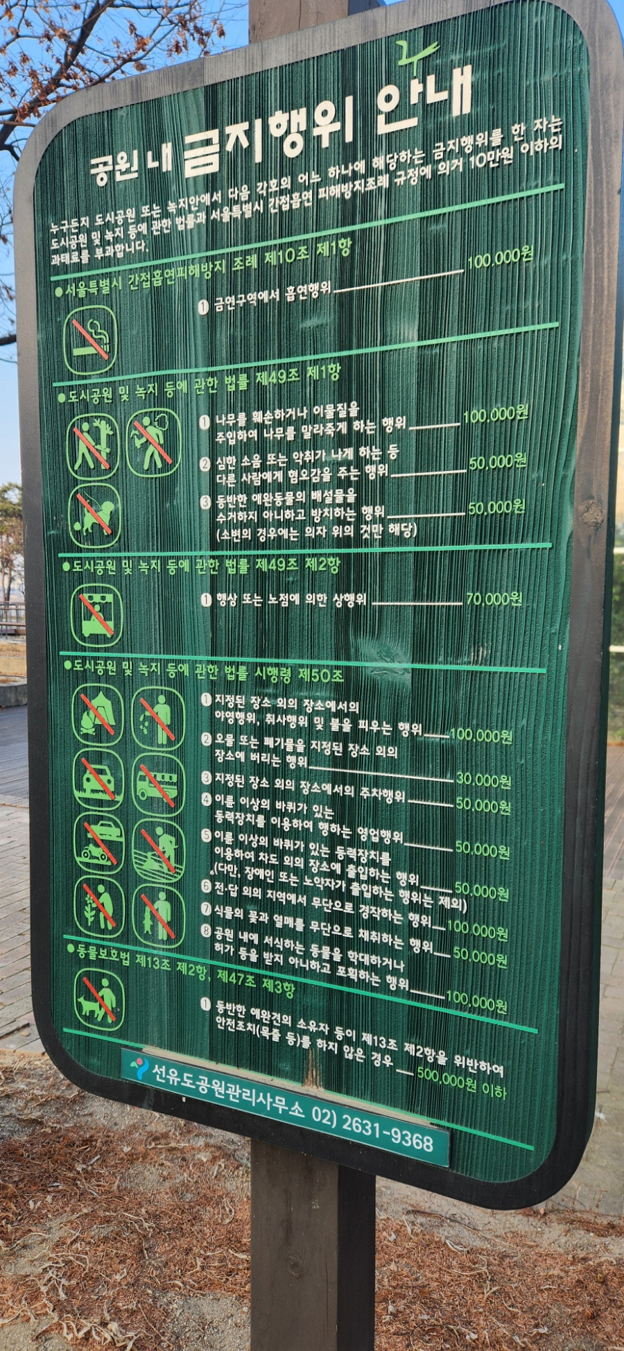 공원 내 금지 사항을 읽고요.