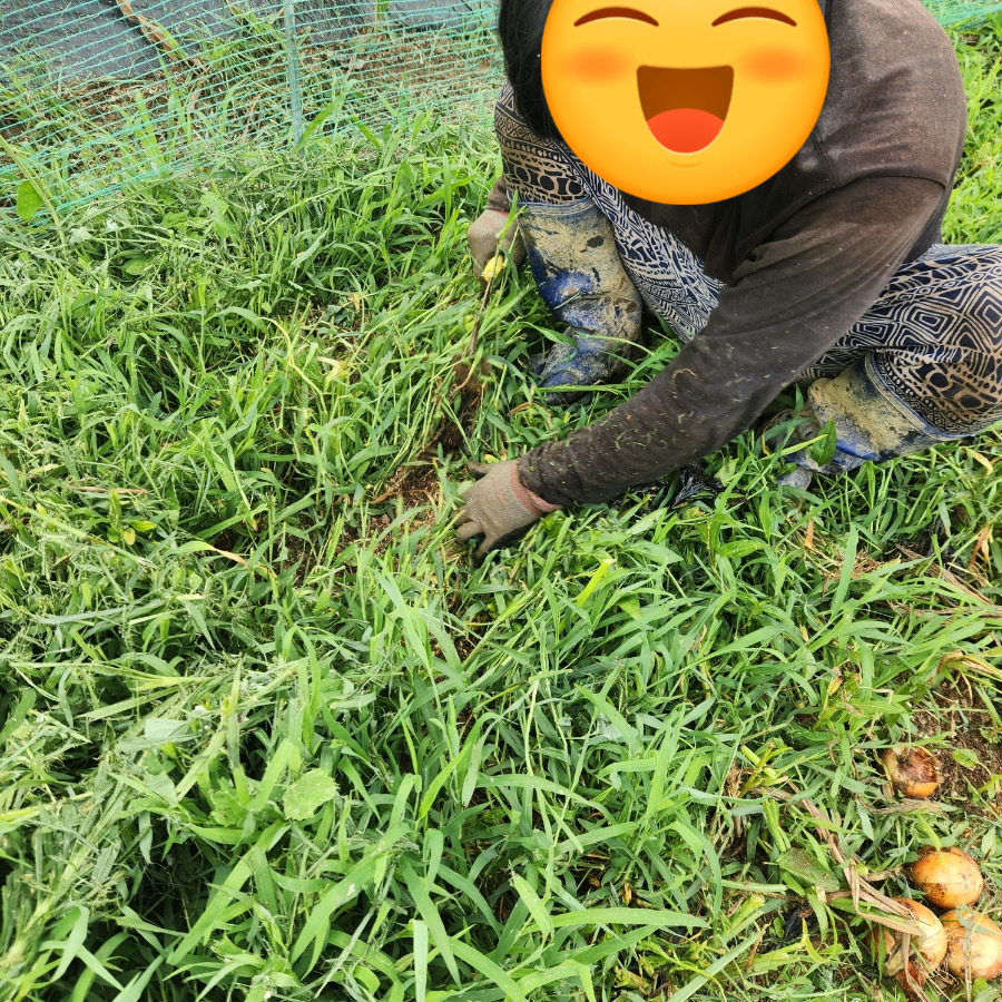 수북한 풀밭에서 용케도 양파를 구해냅니다.