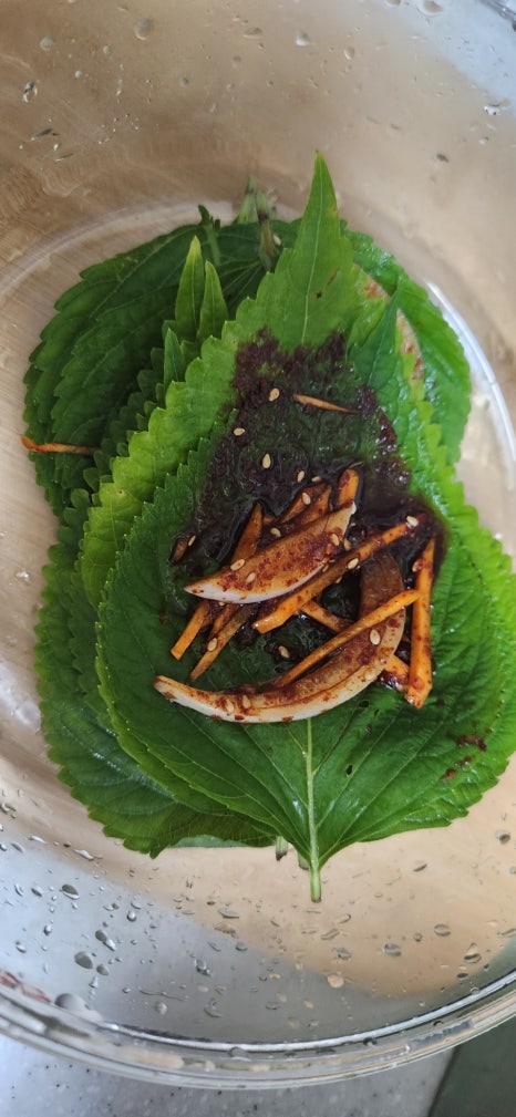 시원하게 깻잎 김치가 완성되었어요. 따끈한 밥 위에 척~ 올려 먹으면 꿀입니다. 꼬기랑 먹어도 좋고요. 그냥 먹어도 좋아요. 이웃님들도 깻잎 사서 깻잎 김치 담가 보세요.