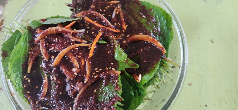 - 깻잎을 5장씩 모아서 위에 양념을 발라 올린다.