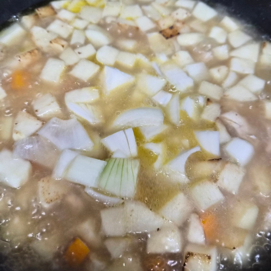 감자, 히카마, 당근 그리고 양파 그리고 닭고기 (냉장고 냉털이 요리인가?)