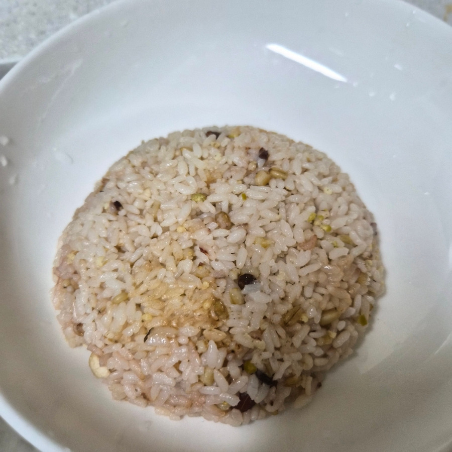 공기에 밥을 담아 올려도 좋고요. 저는 밥을 많이 먹으려고 대접에 밥을 넣고 눌러 주었습니다.