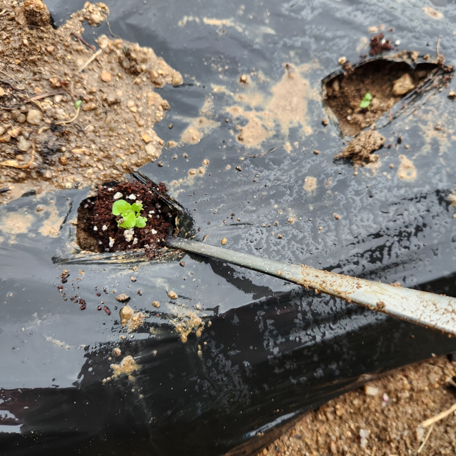 호미로 구멍을 내고 바질을 꺼내기 힘들어서 숟가락으로 퍼서 땅속에 심었지요.