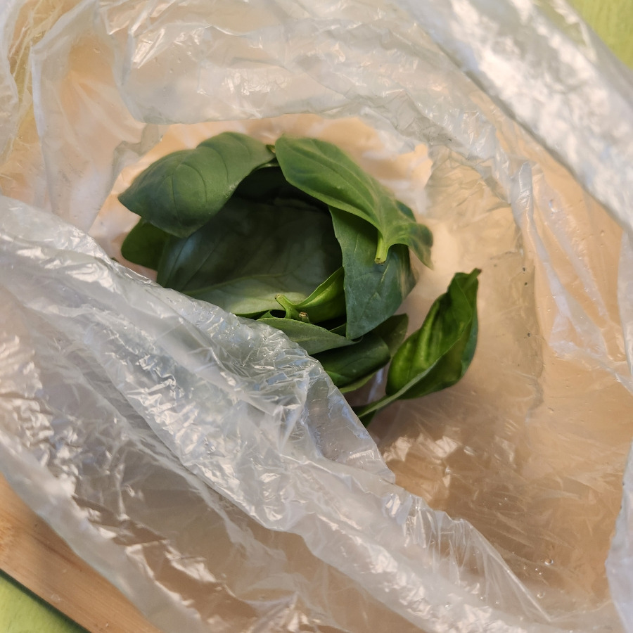 지난 일요일에 따서 와서 냉장고 속에서 자던 바질을 꺼냈어요.