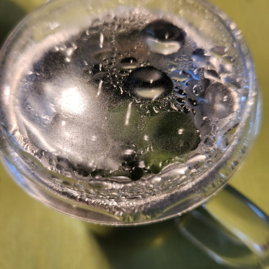 뜨거운 물에 뚜껑 아래로 방울방울 맺히네요. 예쁩니다.