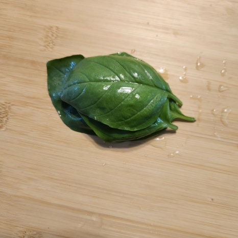 바질을 듬성듬성 잘랐어요. 바질을 5장 모아서 잘랐어요.