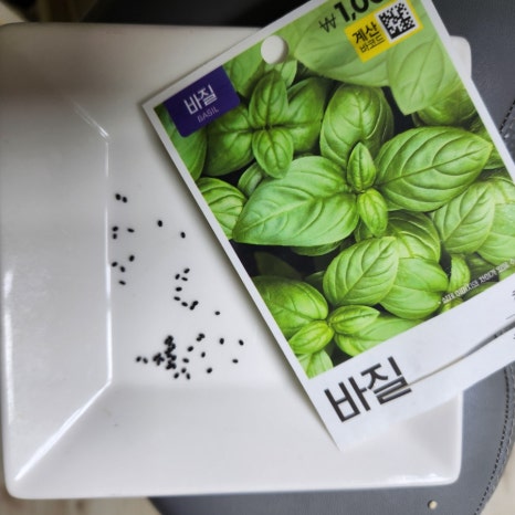 정말 잘 큽니다. 집에 또 씨앗을 뿌렸는데 소식이 없어요. 너무 뜨거운가? 조용해요. 원래 바질이 늦게 싹이 올라와요. 요거 느긋하게 참으셔야 합니다. 저도 지난번에 위에 살짝 또~ 뿌렸지요. ㅋㅋ그리고요. 저 또 바질 씨앗도 샀어요. 달달한 마루 씨 엄마 이번엔 종묘상에서 바질을 구매했어요.이건 또~ 언제 뿌리려는지.. 몰라요. 몰라.