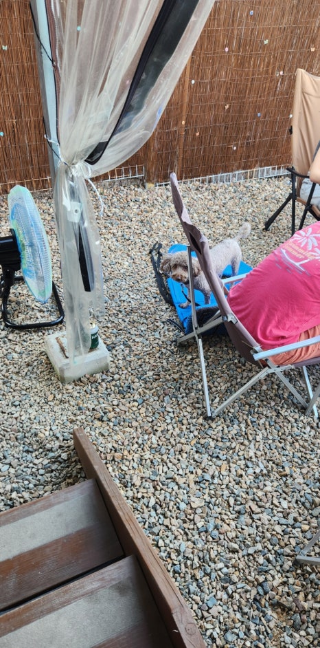 울 마루 씨도 옆집 강아지가 신경이 쓰여 처음에는 컹컹 짖더니~금세 조용해집니다. 다행입니다. 다행~ 그리고 강아지들을 위한 울타리가 있어서 그냥 풀어 놓을 수 있어 좋았어요. 아참 카라반 내부에 강아지 물그릇과 사료 그릇이 있어요. ^^ 마루는 가지고 간 그릇을 사용했어요. 혹시 몰라서 매너 벨트도 준비했는데 사용할 일이 없었네요.