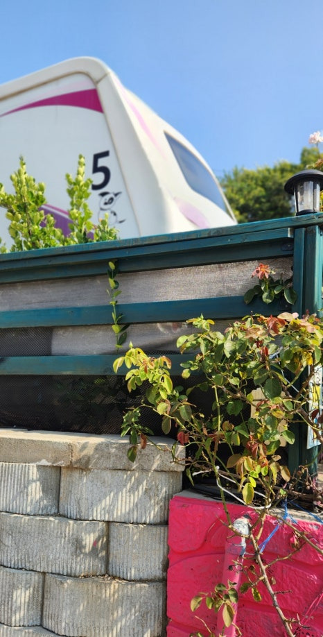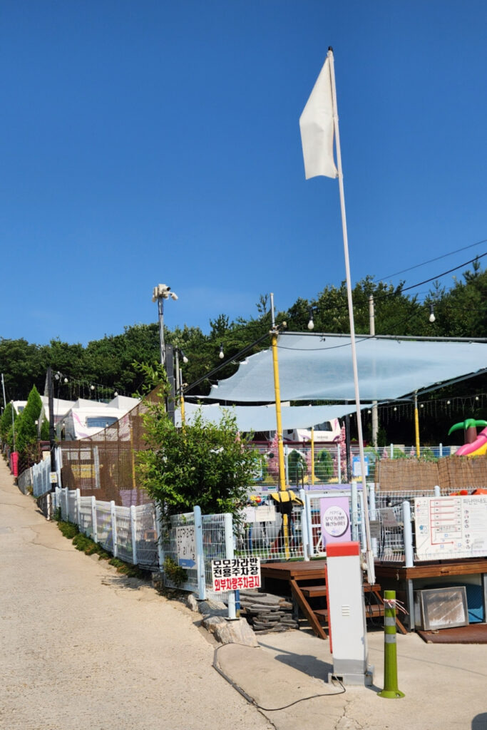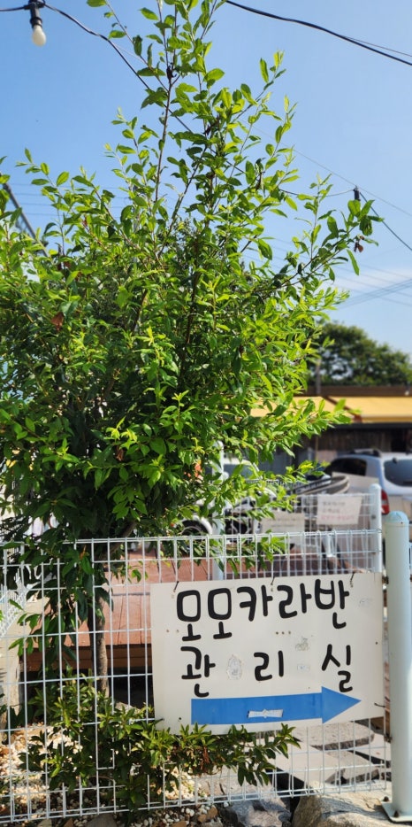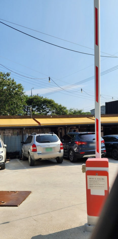 차단기 설치로 모모 카라반 식구들만 주차가 가능해요. 숙소까지 짐을 오를 때 차를 이용하고 주차는 요기서 합니다.