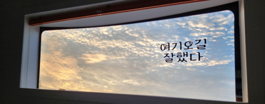 새벽 5시 30분이 조금 넘어서 ~ 아침이 되었습니다. 따가운 햇살에~~ 눈이 떠졌어요. 자동 기상~창문의 커튼을 내려야 하는데~~ 별을 본다고 그냥 잤어요. 그래서 덕분에 예쁜 하늘을 보며 찰칵~ 사진을 찍을 수 있네요. 누워서 하늘 찍기~