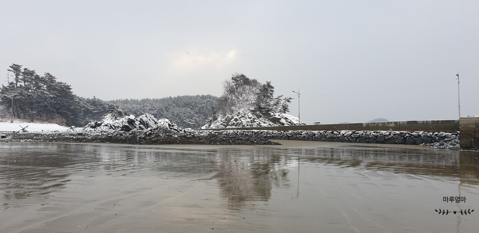 눈과 바람과 함께 했어요. 바다 앞의 캠핑은 만반의 준비가 필요합니다.