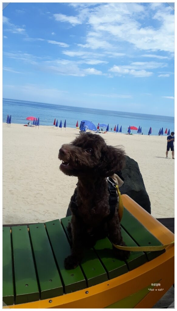 주문진 해수욕장은 반려동물이 해수욕장으로 입장 할 수 없어요. 해변을 정리하시는 분들이 계셔서 반려견들을 제지합니다. 주문진 해수욕장의 캠핑장은 반려견 동반이 가능했어요. 숲 위에 있는 캠핑장에는 반려견과 함께 하시는 분들이 계셨어요.