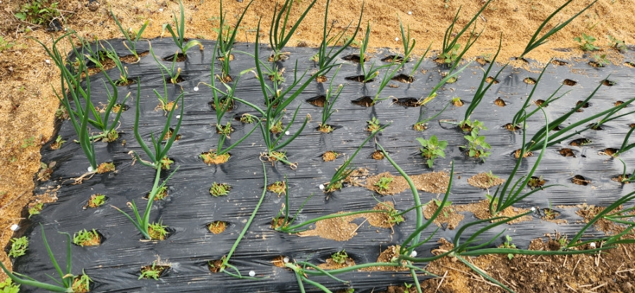 비닐 멀칭 사이에 쏘옥 들어가 큰 꿈을 꾸며 자고 있는 감자님들~
