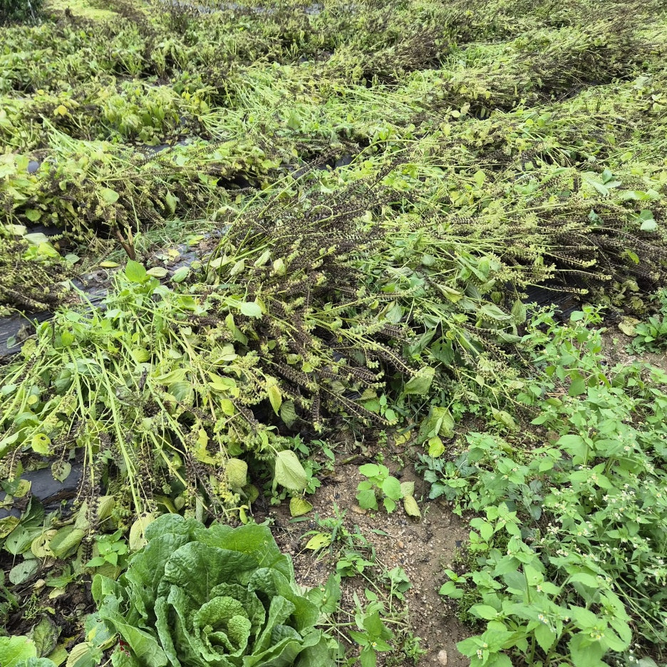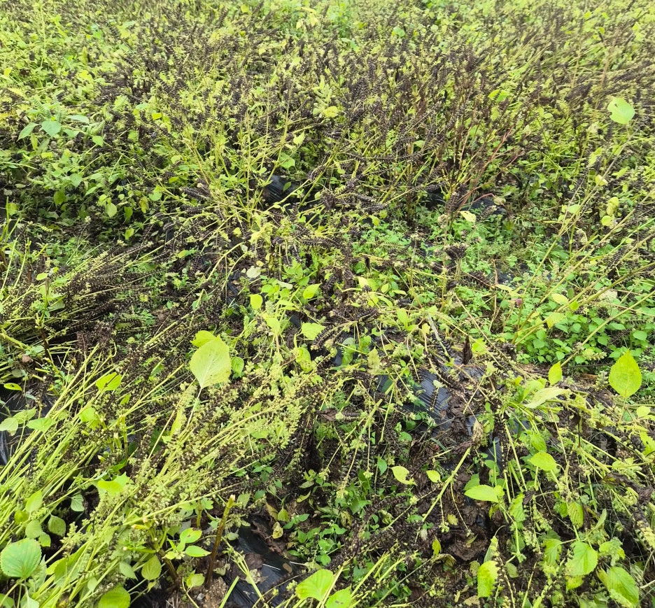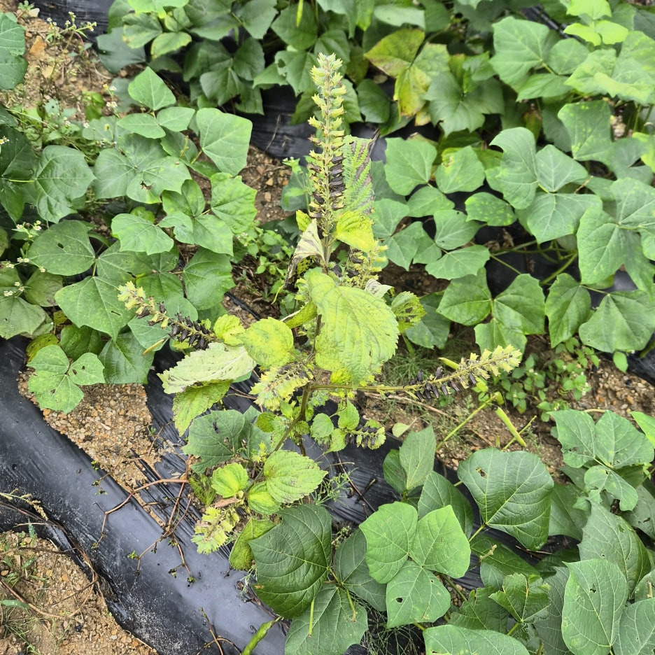 히카마 사이에서 크던 키 작은 들깨와 아직도 싱싱한 들깨~