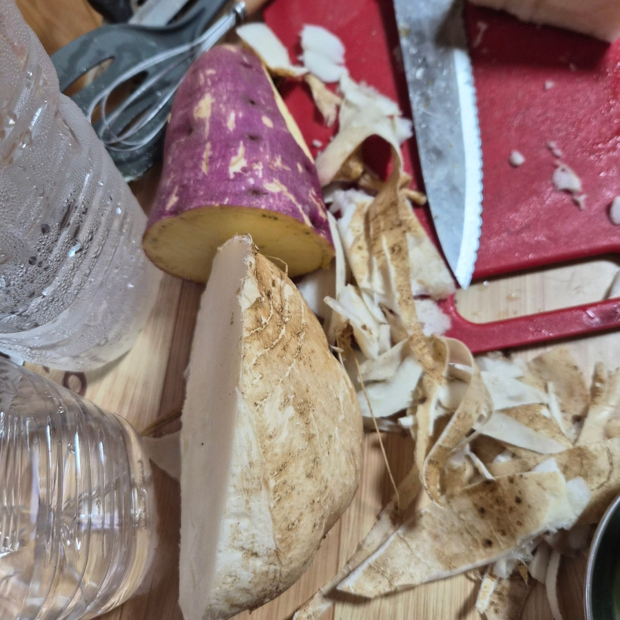 엄청 큰 히카마와 엄청 큰 고구마~ 잘라도 잘라도 남아요.
