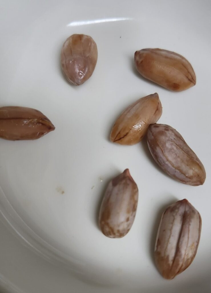 옷을 벗은 땅콩~ 키우면서 먹는 땅콩은 볶아서 먹는 것보다 요렇게 삶아서 먹는 것이 더 맛있어요. 제 생각~~