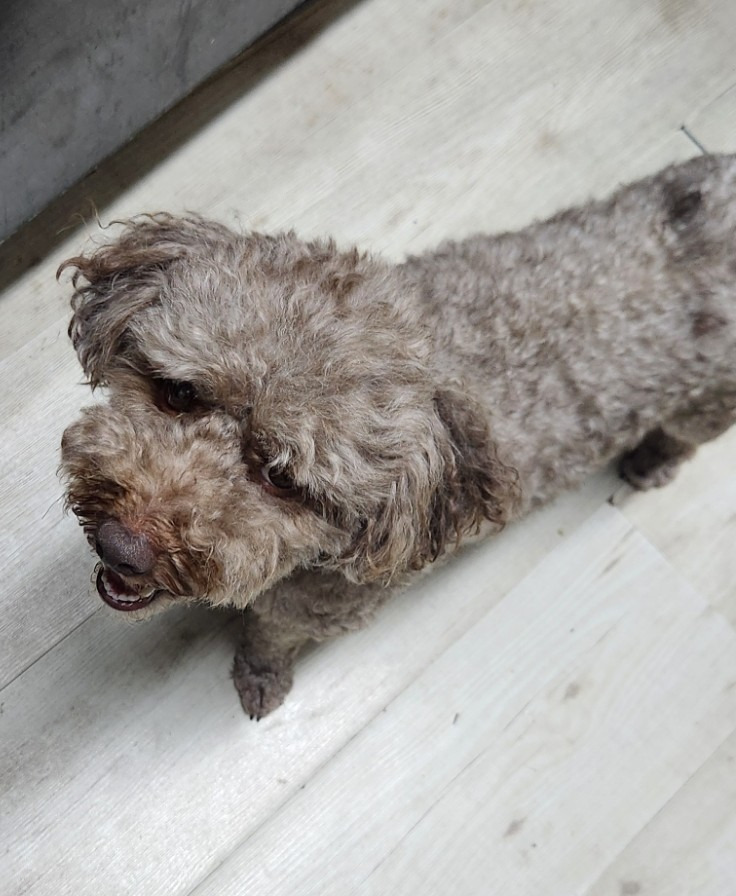 냄새를 맡은 달달한 마루 씨. 땅콩 반쪽 먹고 기분 좋아 떠나지 못하고 있어요.