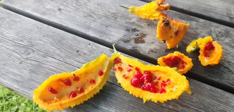 익어서 벌어진 여주 안에 젤리 씨앗~ 신기하지 않나요?