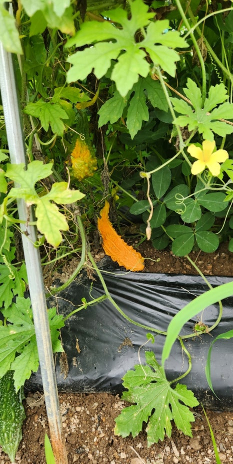 익어서 터진 아이들도 있어요. 너무 익어서요. 자연스럽게 씨앗이 떨어지게 벌어진 여주.