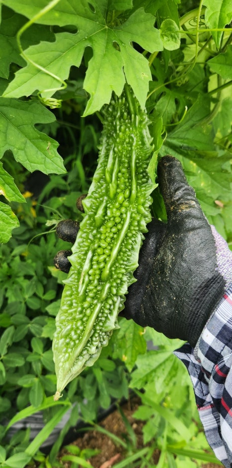 매주 싱싱한 도깨비방망이 여주를 수확합니다.